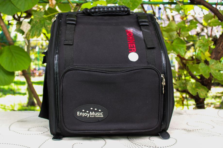 K harmoniki spada tudi torba za prenašanje harmonike, ki ima nastavljive pasove in priročen predal za shranjevanje. Je kompaktna in vodoodporna.