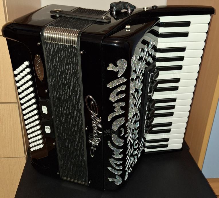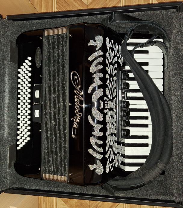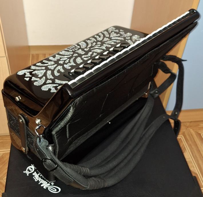 Prodajam lepo ohranjeno harmoniko Melodija Violeta. Stara je 2 leti, je kot nova. Lahka in lepo zveneca, primerna tudi za mlajše.