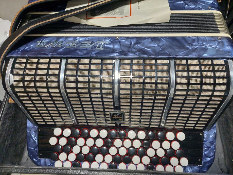 Prodaja se ohranjena harmonika s kovčkom, primerna za ljubiteljsko igranje.