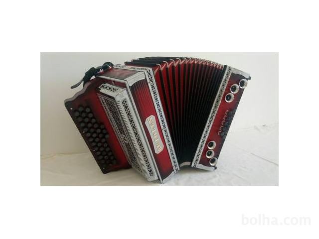 Najem diatonične harmonike Butolen C-F-B, Letnik 2017, Harmonika je skoraj nova, 38 cm visoka, 3 dodatni gumbi.