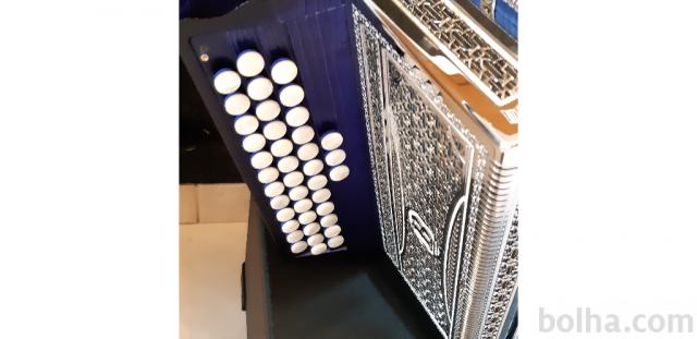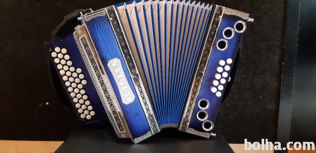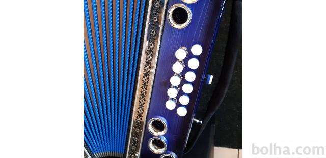 Najem diatonične harmonike Butolen C-F-B, Letnik, 30.4. 2019, Harmonika je nova, 38 cm visoka, 12+13+12+3 dodatni gumbi.