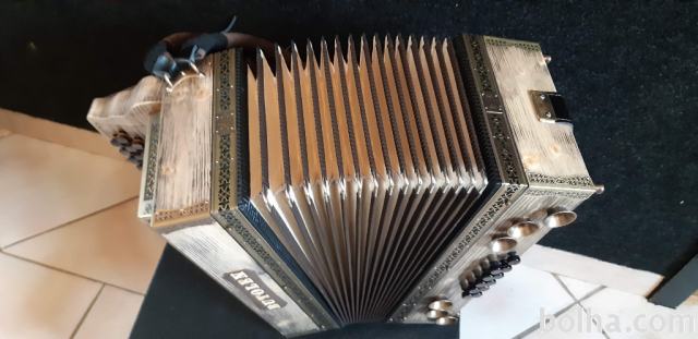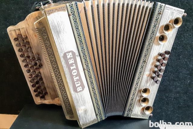 Najem diatonične harmonike Butolen C-F-B, Letnik, 8.5. 2019, Harmonika je nova, 38 cm visoka, 12+13+12+3 dodatni gumbi.