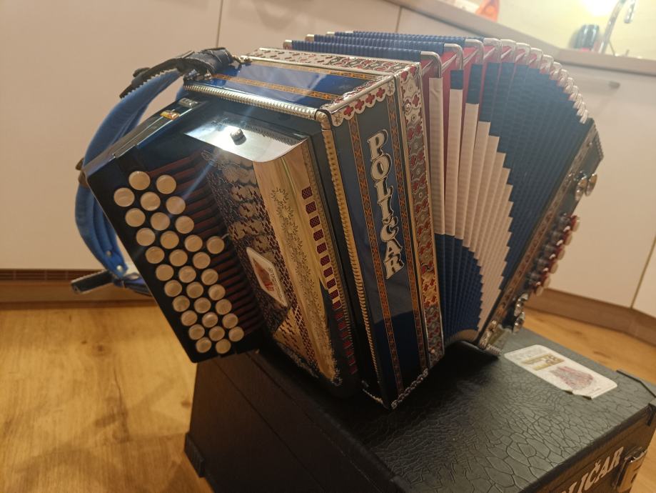 Prodamo otroško harmoniko Poličar, model BP 320 Uglasitev CFB Stara je 10 let in v odličnem stanju, kot nova. Ravnokar je bila pregledana v celoti in uglašena pri Poličarju.