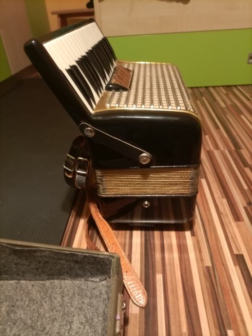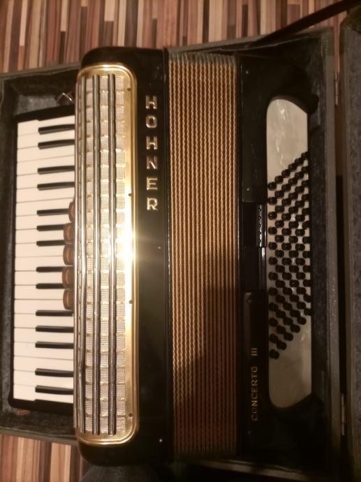 Prodam odlično ohranjeno klavirsko harmoniko Hohner 72 basna, črne barve priložim tudi kovček. Harmoniko je moj sin prerastel in je zato v prodaji, igral jo je 3 leta, ima mehke tipke in je odlična za začetnike in tudi bol izkušene igralce harmonik. Za resnega kupca cena ni zadnja kličite samo resni.