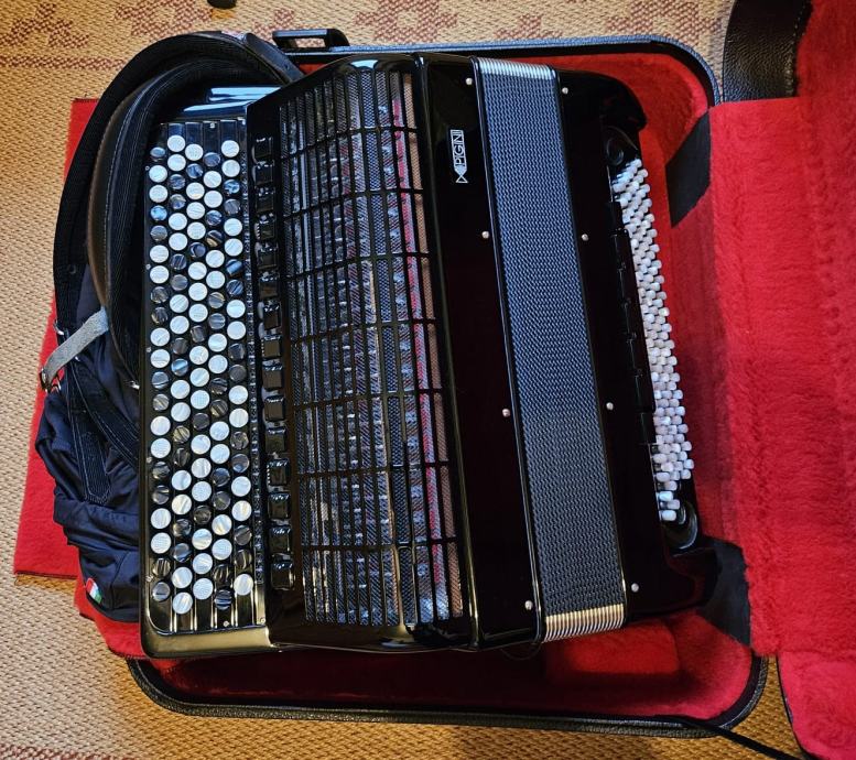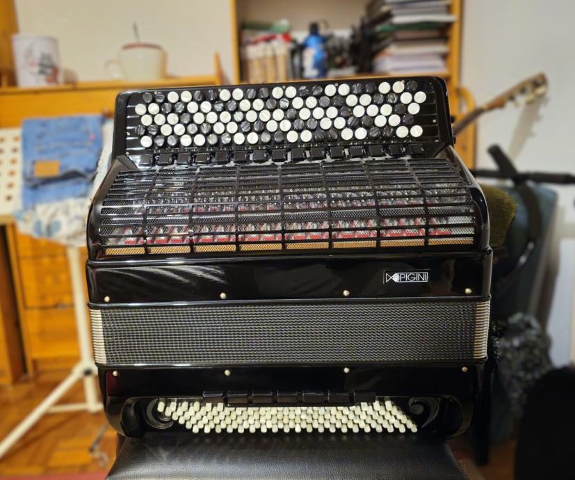 Prodajam kromatično harmoniko Pigini Sirius Millennium. Harmonika je v super stanju, dobro vzdrževana in je bila igrana manj kot eno leto tekom študija na Akademiji za glasbo.
