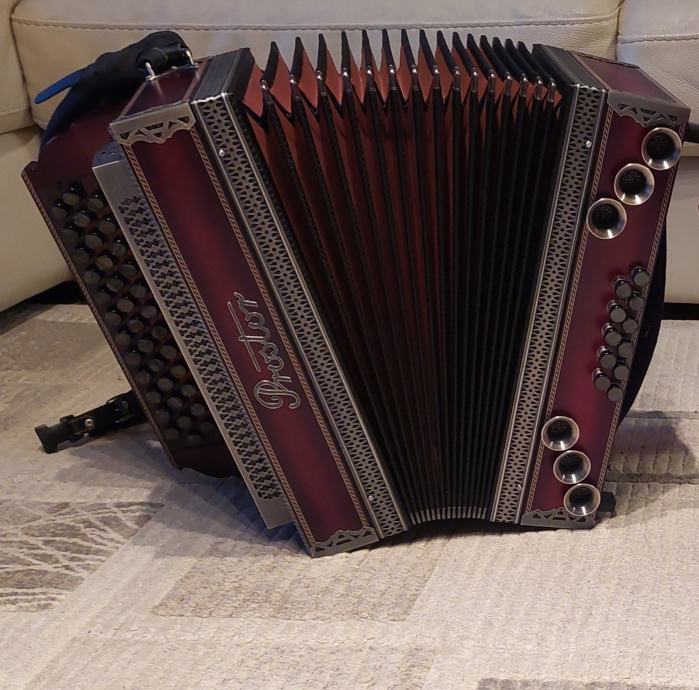 Prodam 2 leti staro brezhibno harmoniko Prostor 38 cm CFB z najboljšimi A'mano glasilkami. Igrana ljubiteljsko, zadnje 3 mesece igrana mogoče 3krat. Kot nova. Za ogled na tel.: 030 457 301