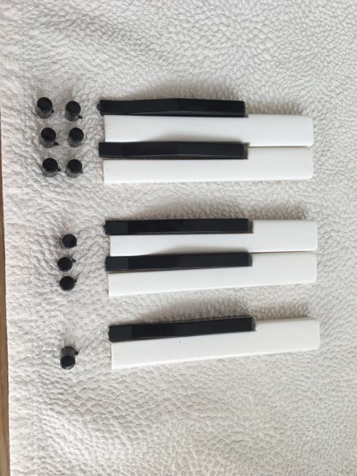 prodam NOVE tipke za klavirsko harmoniko Melodija, originalnega proizvajalca, lahko posamezne ali celo garnituro - za zamenjavo celotne klaviature, bele in črne - poltonske, ter tudi basne gumbe, primerne tudi za druge klavirske harmonike..., zelo ugodno, priložnost.