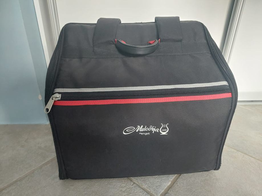 Prodajam odlično ohranjeno torbo za 48 basno harmoniko, ki se lahko uporablja tudi kot nahrbtnik. Poleg tega prodajam tudi originalni voziček, na katerega se lahko torba namesti, kar je praktično za otroke, ki jim je inštrument še pretežak, da bi ga nosili. Oboje sem kupil v trgovini Melodija Mengeš. Sin, ki igra harmoniko, je bil torej prvi lastnik torbe in vozička. Ker je zrasel in smo kuplii veliko večjo harmoniko, oboje prodajam. Za torbo in voziček, bi v trgovini odšteli več kot 140 evrov. Preverite na: https://www.melodija.si/torbenahrbtniki/216-torba-nahrbtnik-za-klavirsko-harmoniko-premium-ac-20-96-bas-z-vozickom.html