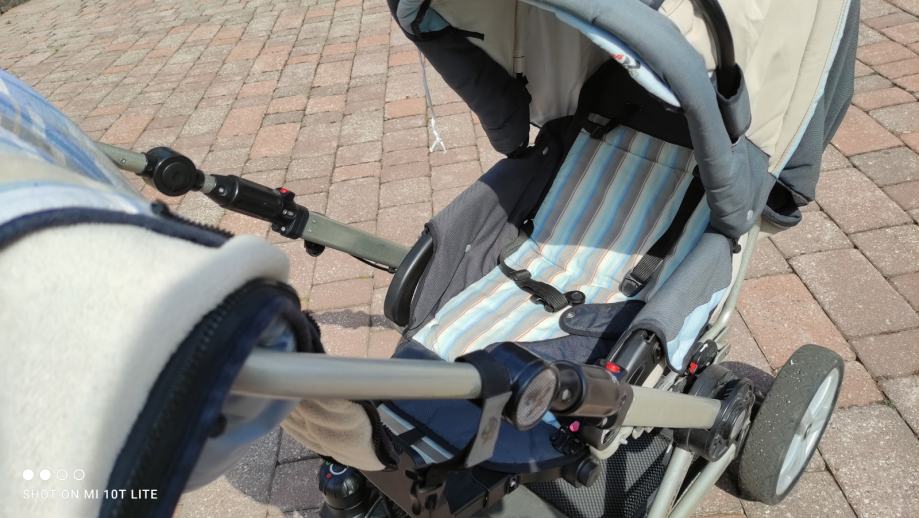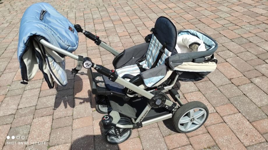 Prodamo kompakten otroški voziček Hartan RS onc z vso opremo. Voziček je neverjetno kompakten, trpežen in uporaben...ima vse mogoče nastavitve : zavore koles, preklop ročaja, podaljšanje do velikosti 90cm (od glave do pete). Ima uporabne žepe in spodaj košaro. Svetlobno okence, ki se tudi zapre oz prekrije . Uporabi se lahko kot globok voziček in kot športni voziček. Dodatna vreča je oprana in celoten voziček je očiščen in pripravljen za uporabo.