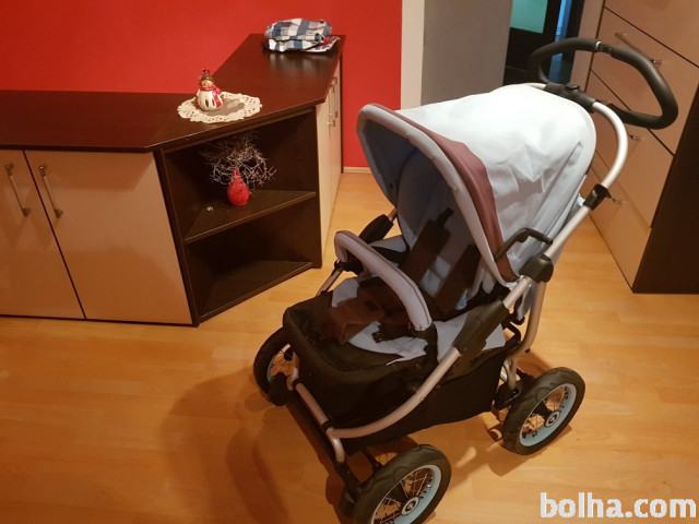 Prodam lepo ohranjen Hauck Traxx otroski vozicek svetlo modre barve.