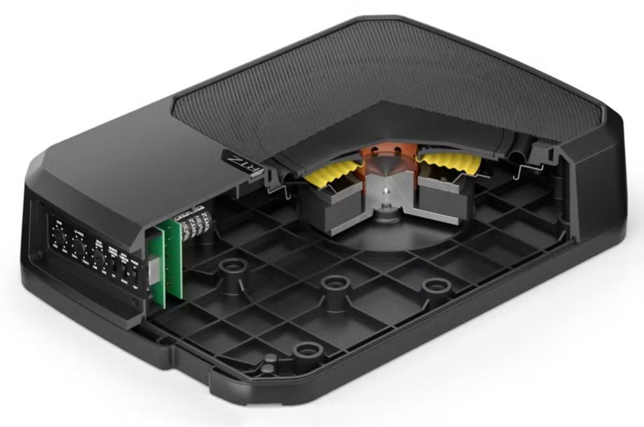 Kompakten dizajn: Nizka višina omogoča namestitev pod sedež ali v omejene prostore, brez ogrožanja kakovosti zvoka.