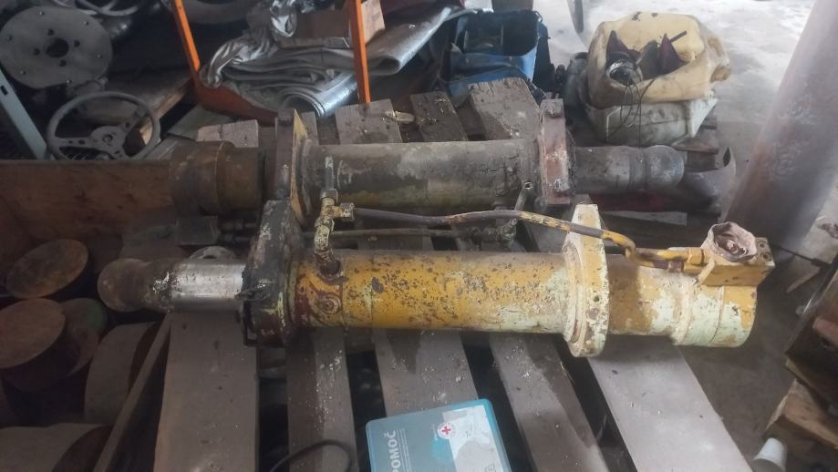 Več različnih cilindrov različnih v glavnem večjih dimenzij in ostalih hidravličnih črpalk motorjev in cevi ki jih ni na fotografiji