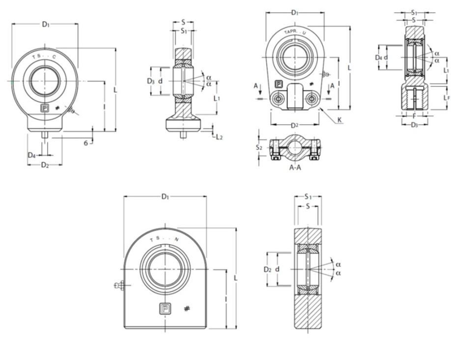 Zglobna (gibljiva) ušesa za hidravlične cilindre.