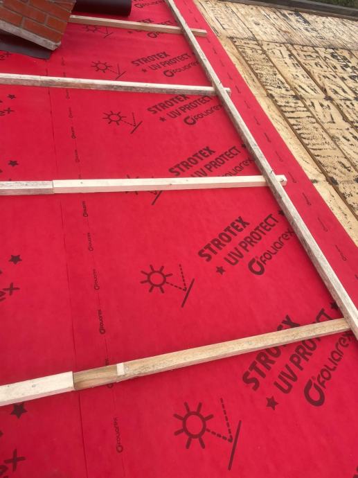 Po namestitvi folije nadaljujte s postavitvijo strešne kritine po standardnem postopku