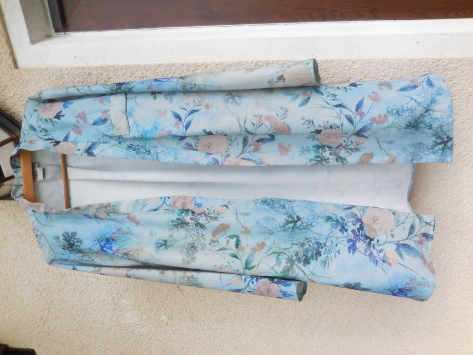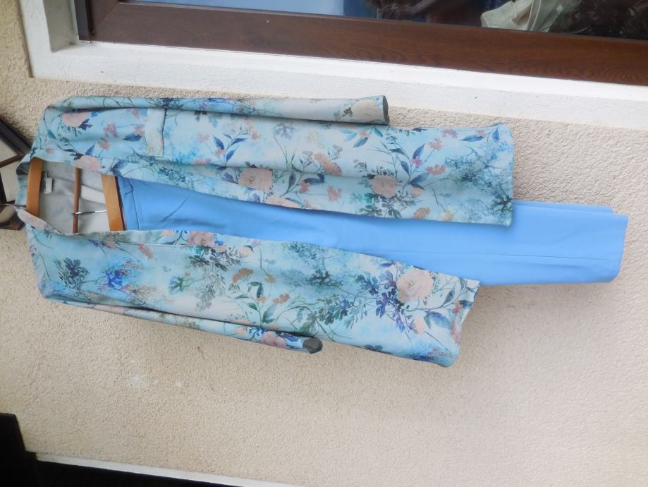 Zelo lepo ohranjen, ni podložen in ni raztegljiv, Jakna je zelo dolga, brez gumbov, ob strani ima 2 žepa. Hlače se zapenjajo spredaj na zadrgo.