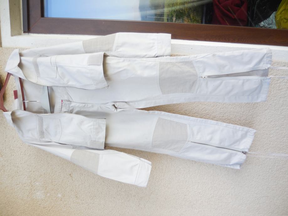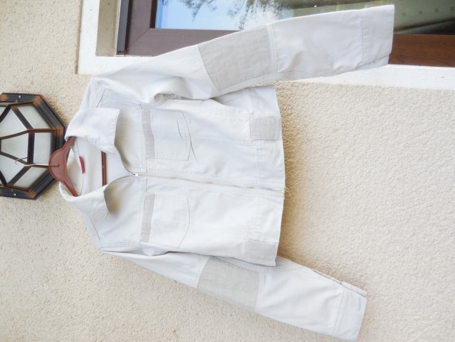 Zelo lepo ohranjen bombažni komplet hlač in jakne. Dolžina hlač je do gležnjev, jakna ni podložena, kp. je iz 100% bombaža in ni raztegljiv. Hlače so velikost S, jakna pa M.