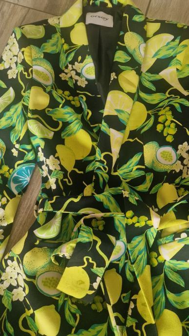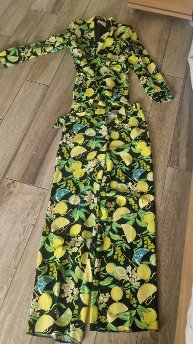 Hlačni kostim, orsay, številka S. Odlično ohranjen, nosen 2x, ne najdem druge priložnosti. Zelo prijeten za nosit. Jakna ima pas,da si lepo reguliraš zatiskanje. Dodam zeleno majčko. 40 evrov skupaj s poštnino.