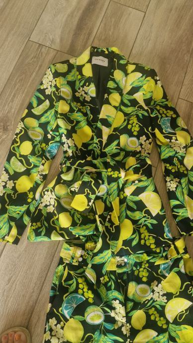 Hlačni kostim, orsay, številka S. Odlično ohranjen, nosen 2x, ne najdem druge priložnosti. Zelo prijeten za nosit. Jakna ima pas,da si lepo reguliraš zatiskanje. Dodam zeleno majčko. 40 evrov skupaj s poštnino.