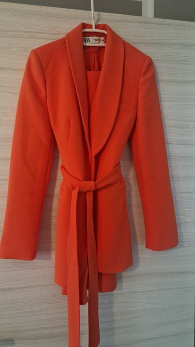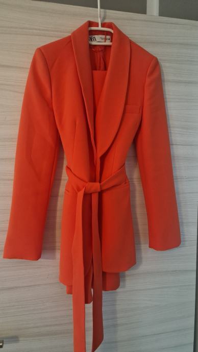odlično ohranjen, prečudovit kostim iz Zare, jakna številka XS, hlače S, ampak je oboje za S. Jakna lepo telirana in ima notranji gumb in pas za zavezat, tako da naredi res lepo obliko.