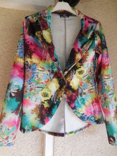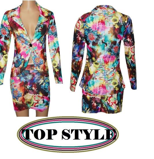 Nov cvetlični kpl jakna in mini krila/hlač. Komplet ni podložen in je raztegljiv.