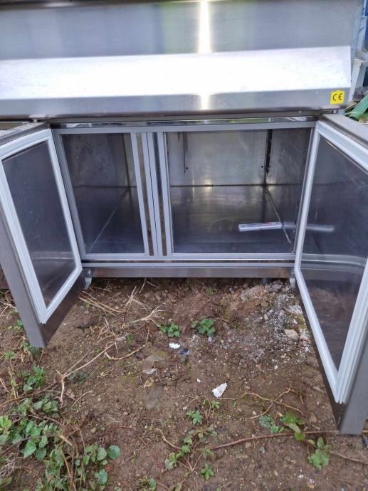 HLADILNI IZDAJNI PULT 2x VRATA Z HLAJENO STEKLENO NADGRADNJO - INOX