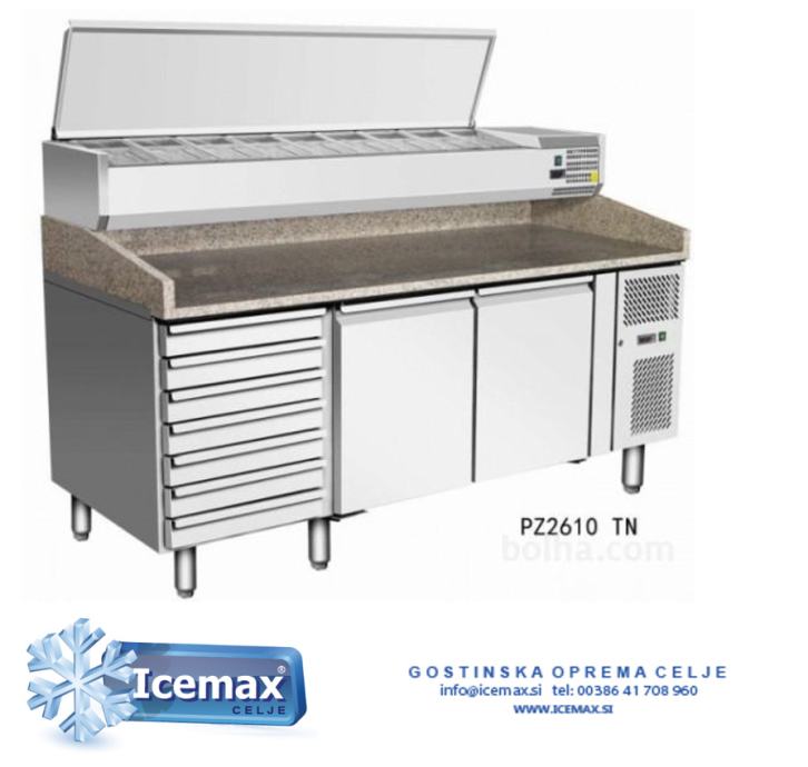 -pizza pult ,granit plošča,,hlajen zalogovnik z policami,dimenzije 2005x800x1026 nov v garanciji.