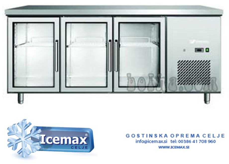 hladilni pult za v šank,3 steklena vrata dimenzije 1795x700x850mm,hladilna temperatura +2 do-10 stopinj.