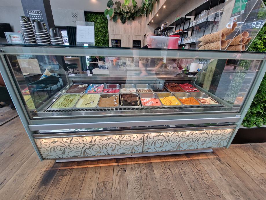 Tako sladoledna kot slaščičarska sta enakih dimenzij, širine 218 cm.
