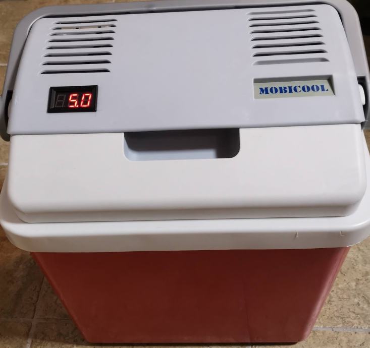 Hladilna box torba MOBICOOL kot mali hladilnik, prostornine cca 25 lit. deluje na 12V. Mobicool je eden bol poznanih proizvajalcev za izdelavo hladilnih naprav.