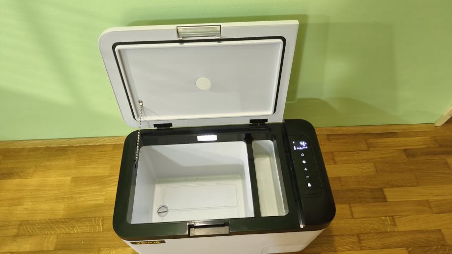 Deluje na 220V ali na 12V v avtu. Ima zaščito proti izpraznitvi akumulatorja, notranjo led osvetlitev in zunanji prikazovalnik temperature.