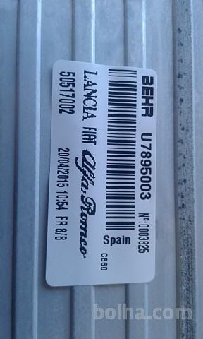 Prodam hladilnik polnilnega zraka za alfa romeo giulietta 120 ali 125 Kw bencinski motor. Hladilnik je nov in original. Prodam ga za 100eur. Kataloška številka je 50517002 .