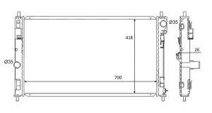 Hladilnik vode Chrysler Sebring. Dimenzije:: Visina 700 mm, Sirina 397 mm, Debelina 16 mm. Letnik: 07-10.