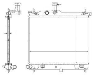 Hladilnik vode 400308-1 - Hyundai i10 (PA). Lastnosti: aluminij, umetna masa, za avtomobile z/brez klimatske naprave, ročni menjalnik, mere omrežja [mm] 444 X 349 x 17. Letnik: 07-13.