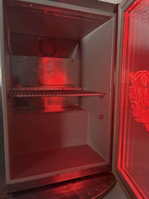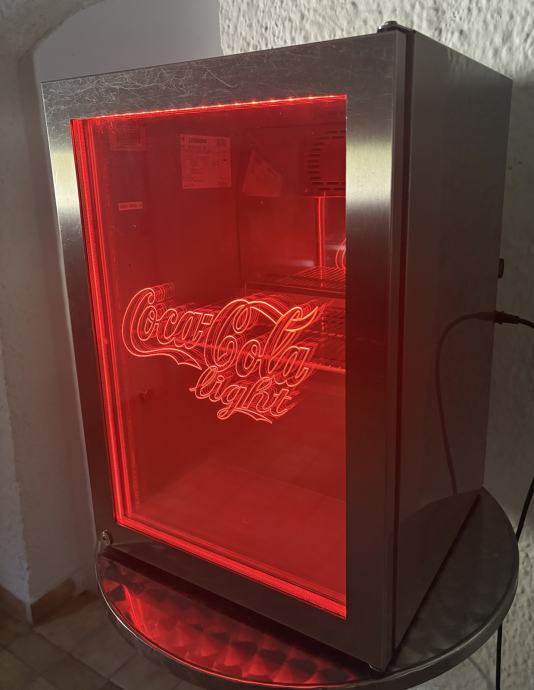 Prodam odlično ohranjen in delujoč hladilnik Coca Cola,proizvajalca Liebherr,celoten iz inoxa,rdeča in bela led osvetlitev,neto polnilne prostornine 42 litrov,hladi do -5 stopinj,možnost pritrditve na steno.