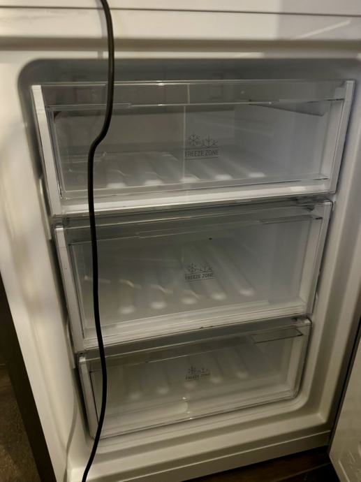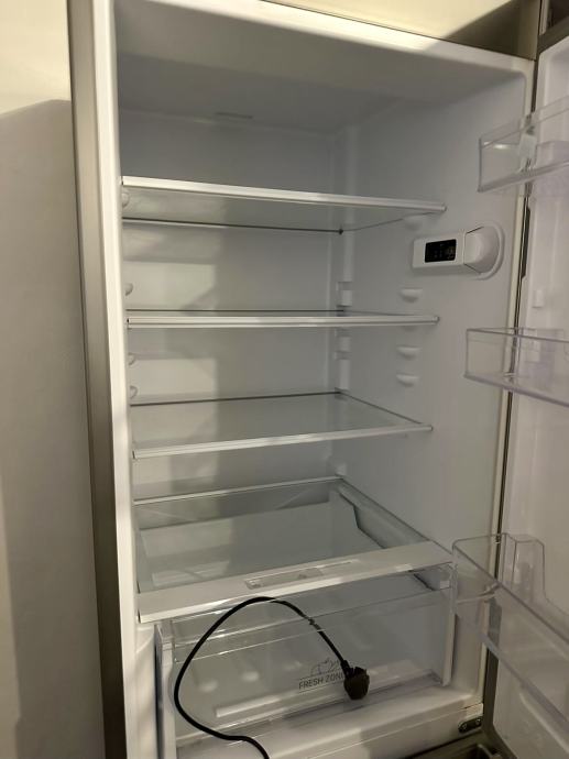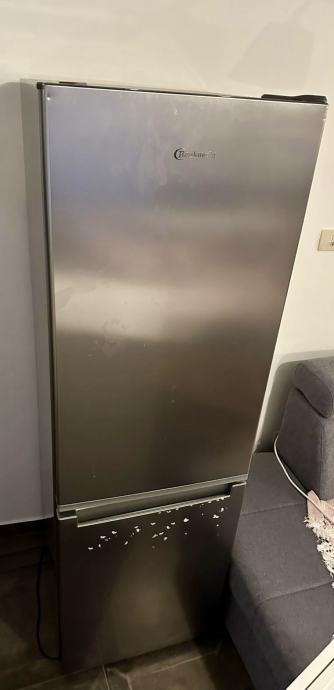 Lepo ohranjen hladnilnik, na njem so nalepke, se jih samo zdrsa dol