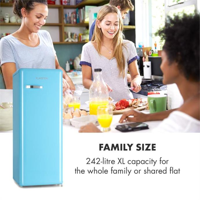 Klarstein Irene XL, hladilnik, 242 l, retro oblika, 4 police, A+, modr