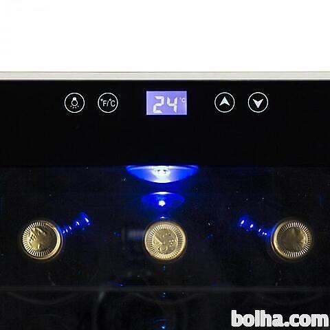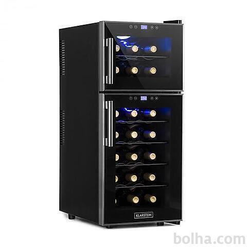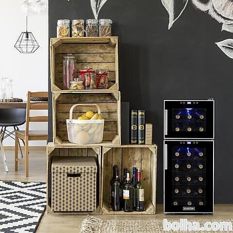 Dvojno ohlajanje za enostavno najboljši užitek z vina. Klarstein Reserva 21 vinoteka zagotovi žlahtnim, rdečim in belim kapljicam v elegantnem ambientu ta pravo temperaturo. S Klarstein Reserva 21 vinoteko to ni nobena težava. V njenih obeh samostojnih toplotnih conah je lahko shranjenih 21 steklenic vina, 6 v zgornji in 15 v spodnji coni. Preko dveh upravljanj na dotik z LCD zaslonom se lahko nastavi temperatura za obe hladilni coni. Tako je lahko belo, rdeče ali roze ohlajeno na pravo temperaturo. Ločena dvojna vrata garantirajo, da bo pri jemanju vina iz vinoteke odprta samo ena hladilna cona. Modra notranja osvetljava postavi steklenice, shranjene za steklenimi vrati, spretno na sceno brez tega, da bo svetloba naredila škodo vinu.Termoelektrični Peltierjev sistem jamči tiho obratovanje. Užitek z vina v dvojnem hladilnem prostoru: Klarstein Reserva 21 vinoteka je stilski prostor za skladiščenje in hlajenje z dvema samostojnima hladilnima conama za žlahtne kaplice. Oblika steklenic za vino vpliva na maksimalno prostornino in kapaciteto vinoteke.Več podatkov si oglejte na tej povezavi...