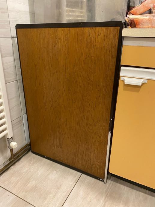 Prodam podpultni vgradni hladilnik Gorenje, višina 88cm, širina 59cm, globina 57cm, vrata so v izgledu temni hrast. Hladilnik je bil rabljen predvsem za hlajenje pijače čez poletje, ker dobro hladi. Poznajo se znaki let, ne dela lučka v notranjosti, vendar hlajenje deluje brezhibno.