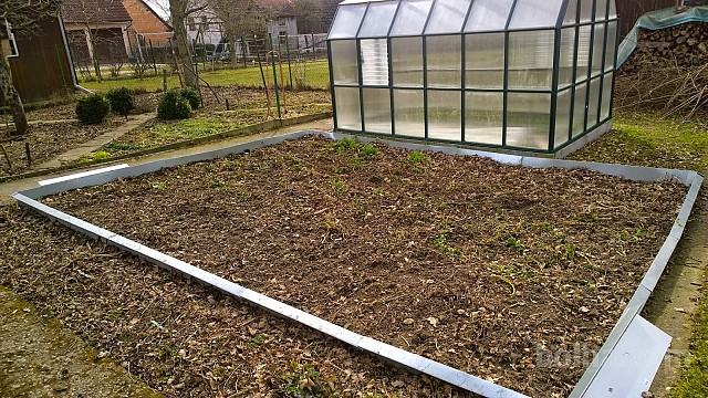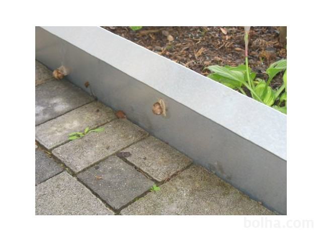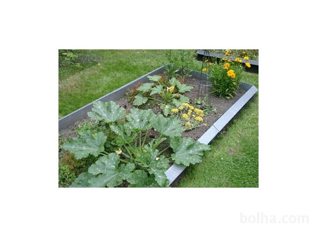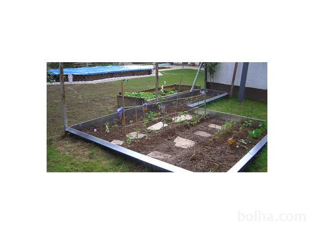 KOVINSKA PREPREKA ONEMOGOČA / PREPRPREČUJE PREHOD POLŽEM NA VRTNE GREDICE.