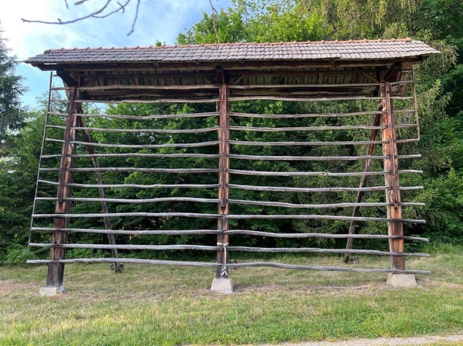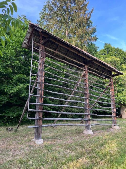 Prodam enojni kozolec, kateri ima stebre iz hrasta. Kot je razvidno iz slike, so stebri v dobrem stanju in primerni za nadaljno uporabo. Kozolec trenutno stoji in kupec ga mora razstaviti.