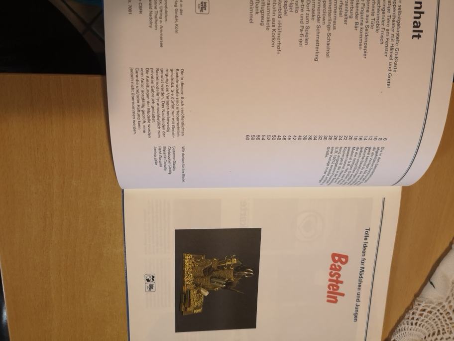 z materiali, ki jih najdemo v vsakem gospodinjstvu: s plutovinami, barvnimi papirji, vrvicami, ostanki stiropora, škatlami s sirom, z mlečnimi škatlami in še marsikaj drugega. Vse te stvari se uporabljajo za ustvarjanje izvirnih in zabavnih predmetov, s katerimi se lahko nato igramo, na primer s prikazano vrtljivo škatlo. Obstajajo natančne risbe predloge za številne predloge za obrt, kosi obrti so predstavljeni v preprosto razumljivih fotografijah in besedilih po korakih.