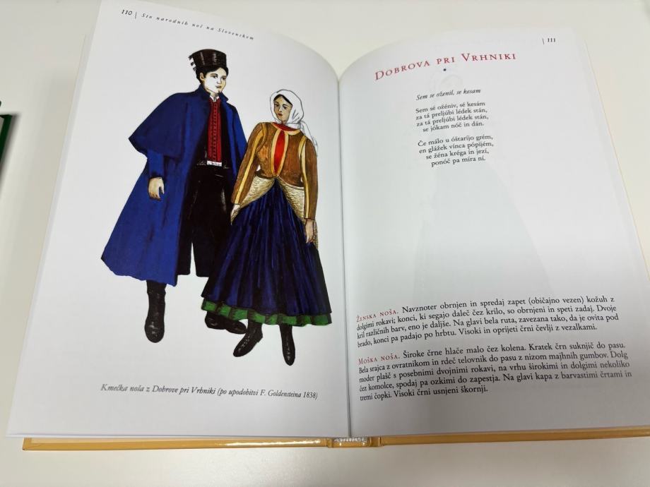 V njej je predstavljenih 100 slovenskih narodnih noš s slikami, opisi in zanimivostmi o oblačilih iz različnih pokrajin.