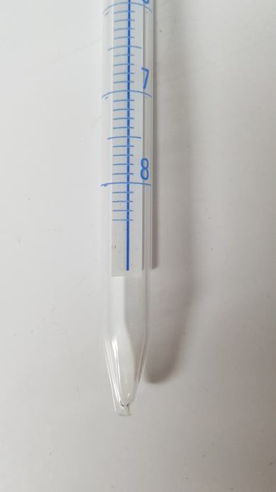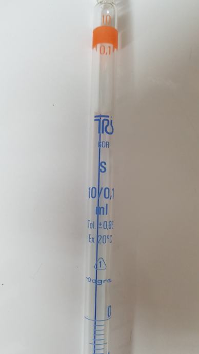 Merilna pipeta z schelbach črto v ozadju za preglednejše odčitanje volumna.