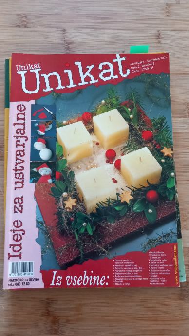 Prodam večje število revij Unikat. Revije so zelo lepo ohranjene. Cena je 4 eur za posamezno revijo. Info. na tel. 031 763 786. Prevzem po dogovoru možen tudi v Ljubljani, Kamniku ali Domžalah.