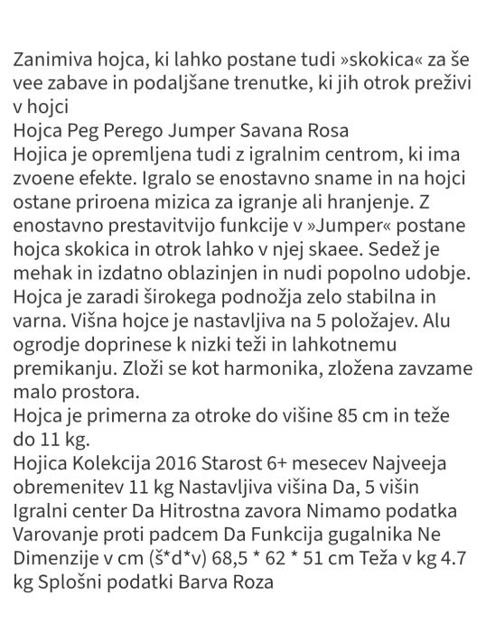 s snemljivim igralnim centrom. lahko služi kot skokec, ali mizica za hranjenje