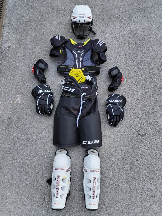 Prodam skoraj nič rabljen hokejski komplet, za hokejista višine 168-178cm. Hlače, čelada, prsnik in komolčniki praktično novi.