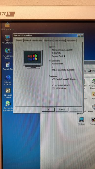 Pripravljen za uporabo, idealen za starejše aplikacije ali retro igre. Nameščen Windows 2000 in Office 2000.