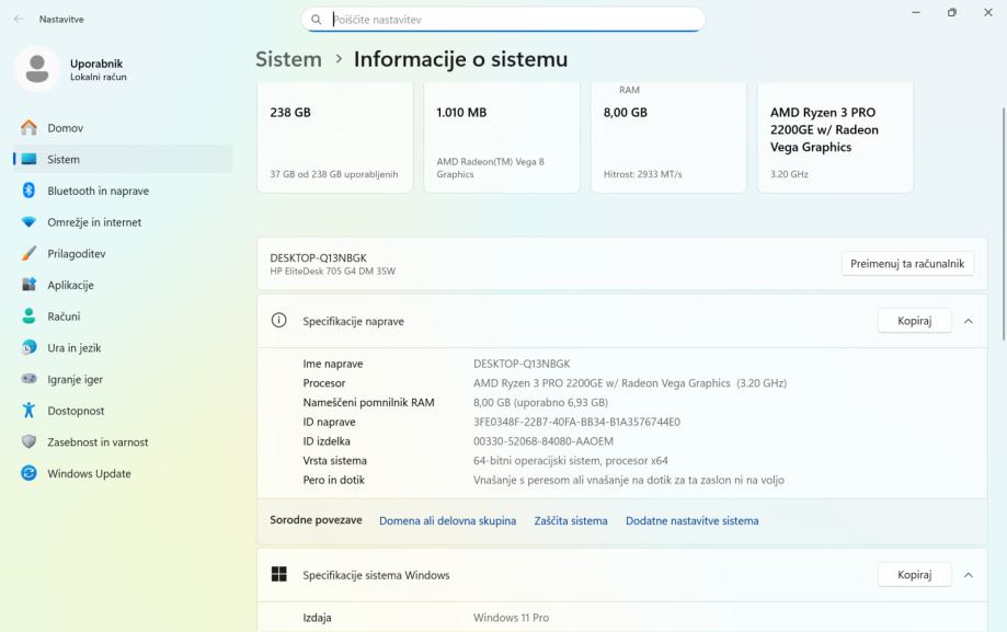 Prodam brezhibno delujoč mini pc HP EliteDesk 705 G4, v zgornjem desnem kotu ima manjšo kozmetično napako katera pa ne vpliva na delovanje.