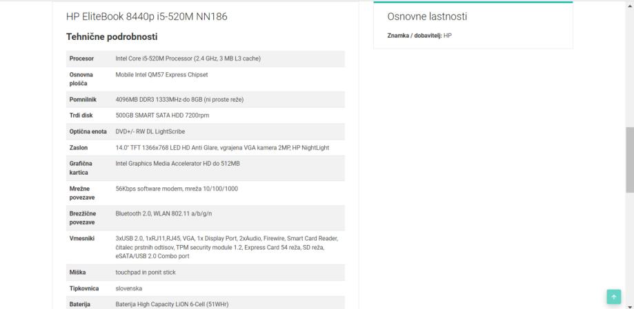 Omenjeni prenosnik poganja Intel i5 M520 procesor,4gb ram,260 gb hdd,Windows10 Pro,SLO tipkovnica,... Računalnik je odlično ohranjen in brezhibno delujoč, baterija pa je žal iztrošena. Možna je tudi kakšna menjava.