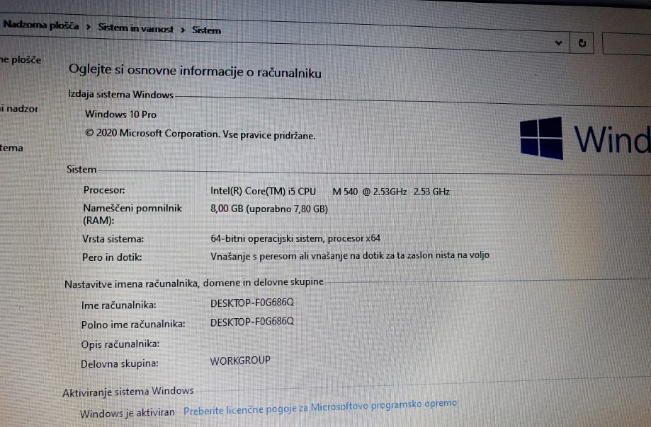 Računalnik je obnovljen in servisiran, pripravljen za prodajo. Vgrajen je bil nov 240GB SSD disk, ki zelo pripomore pri hitrosti in odzivnosti računalnika. Garancija za SSD velja še naslednjih 23 mesecev, priložim račun. Dograjen je bil tudi RAM, sedaj ima 2x4GB. Ima močnejši 90W napajalnik. Naložen je AKTIVIRAN Win 10 pro 64bit. Baterija je v zelo dobrem stanju, omogoča do uro in pol normalnega delovanja.